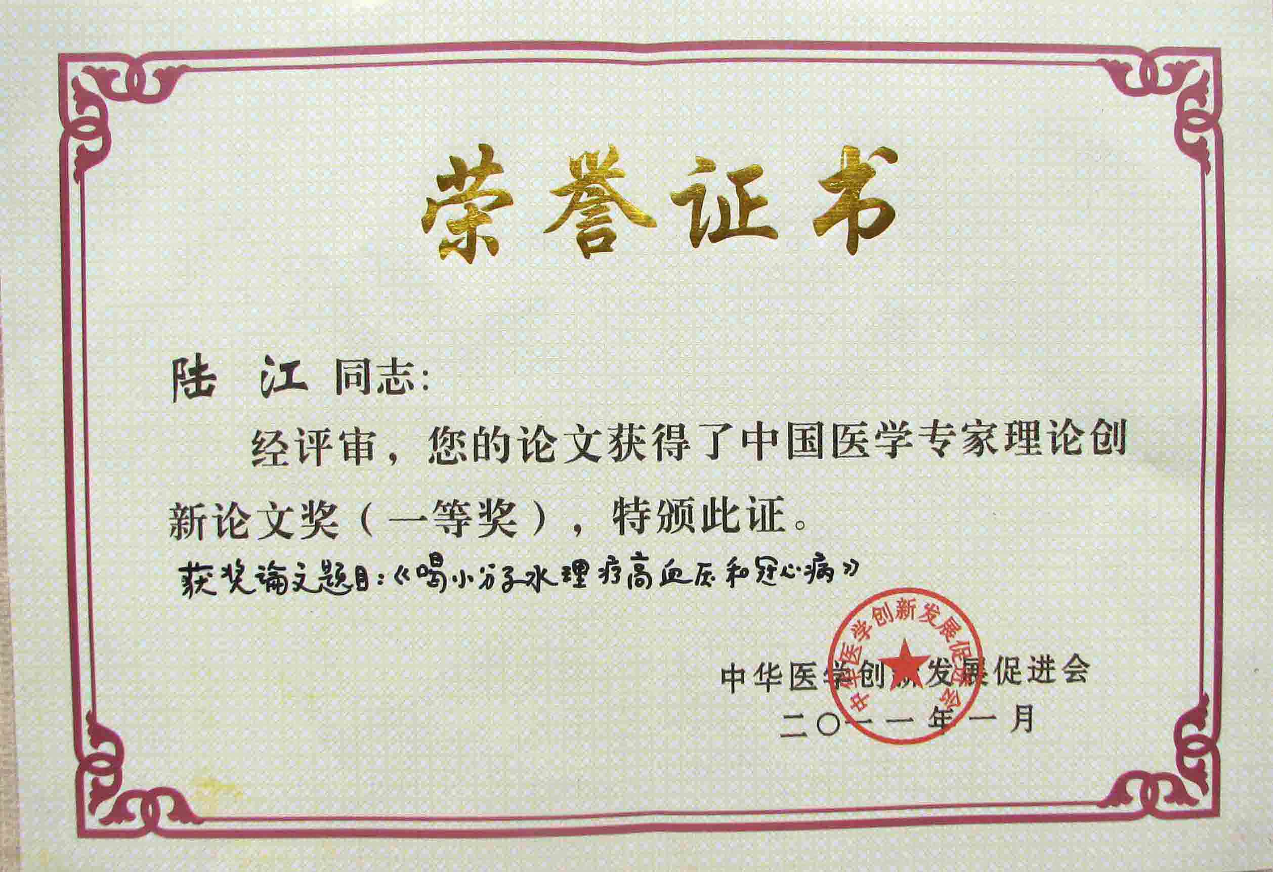人類幾千年來患以上病癥需終生服藥,幾十年也不能治愈。可是我國南寧的高級工程師陸 江,于1990年想根治高血壓,研究發(fā)明了離子水瓶,處理出微小分子團(tuán)水供飲用,經(jīng)過醫(yī)院臨床試用和專家鑒定,1999年獲中國發(fā)明專利權(quán),產(chǎn)品于2000年投放市場后一直跟蹤調(diào)查,據(jù)全國各地用戶反饋:祛除了高低血壓、糖尿病和冠心病,并使前列腺增生、咽喉炎、鼻竇炎、慢性氣管炎、支氣管炎、矽肺病、哮喘、慢性胃炎、腸炎、慢性膽囊炎、慢性腎炎、腎衰、膀胱炎、便秘、痔瘡、風(fēng)濕性關(guān)節(jié)炎和濕疹皮炎及中風(fēng)后遺癥等病癥不藥而愈。為什么喝微小水能治20多種病?陸 江從1991年德國科學(xué)家發(fā)現(xiàn)細(xì)胞膜水通道僅為2納米獲得啟發(fā),認(rèn)為多種器官患病是因細(xì)胞脫水,不能正常代謝和分裂增殖,才使器官細(xì)胞減少致衰弱萎縮而形成細(xì)胞缺水性病癥。22年來的實踐有力地支持了“細(xì)胞脫水致病”這一重要論點,表明喝微小水可滿足細(xì)胞的生理需求,補水就能祛病,是生命科學(xué)新亮點。